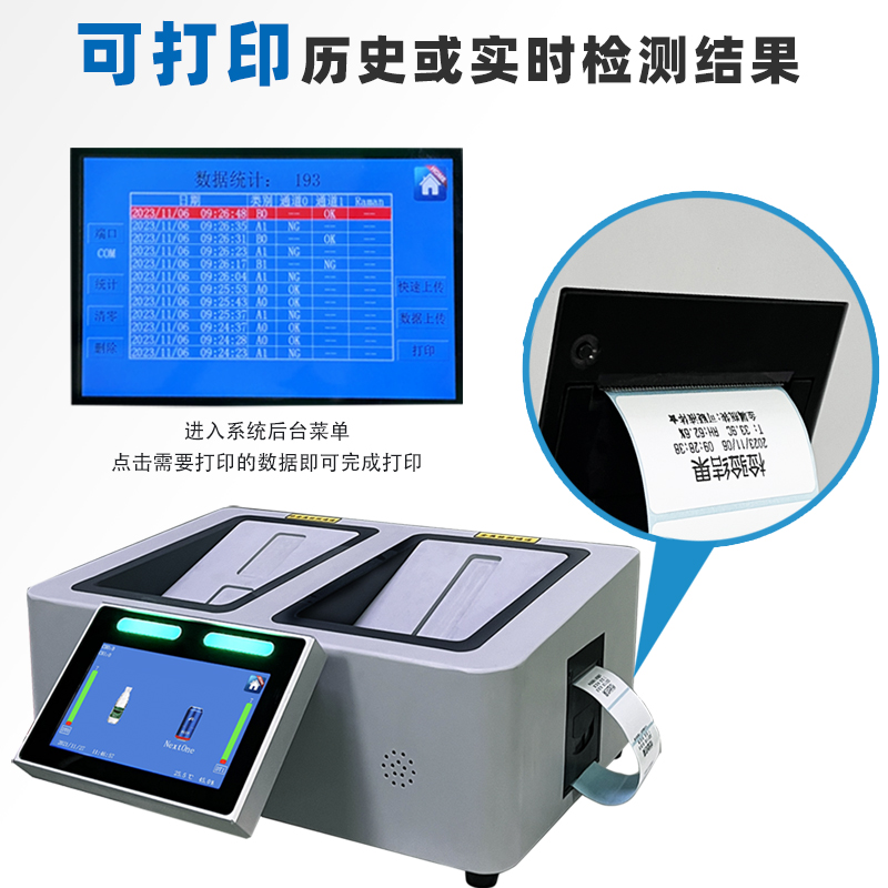 6、可檢測容積尺寸:陶瓷罐、玻璃瓶、PET塑料瓶30mm≤直徑≤200mm;
